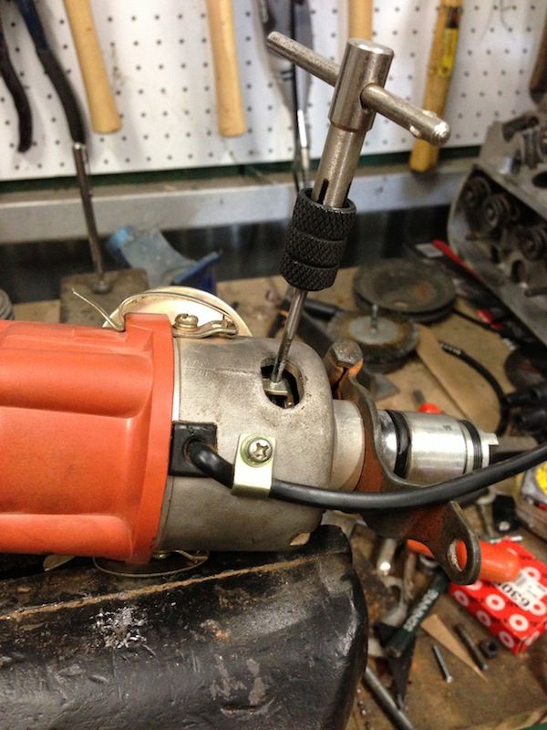 Modifying the SVDA to limit the overall advance. Normally most people opt to bend the tabs in to lock out the dizzy. I opted to drill and tap the tabs so that I could fit grub screws and 'dial in' the overall advance to suit the application.
