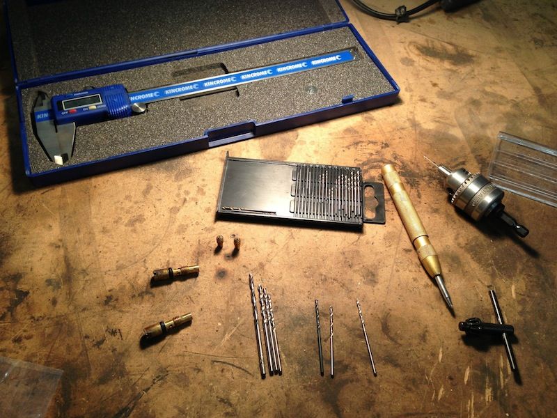 Drilling out the jets on the Dellorto. These drills are tiny - the smallest one is 0.3mm