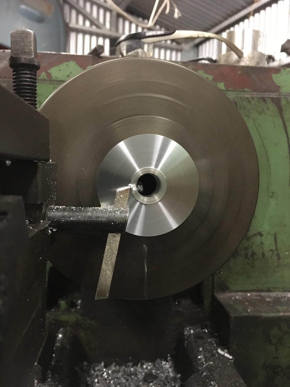 A side on view of the tangent cutter. Easy to make up yourself from a boring bar.