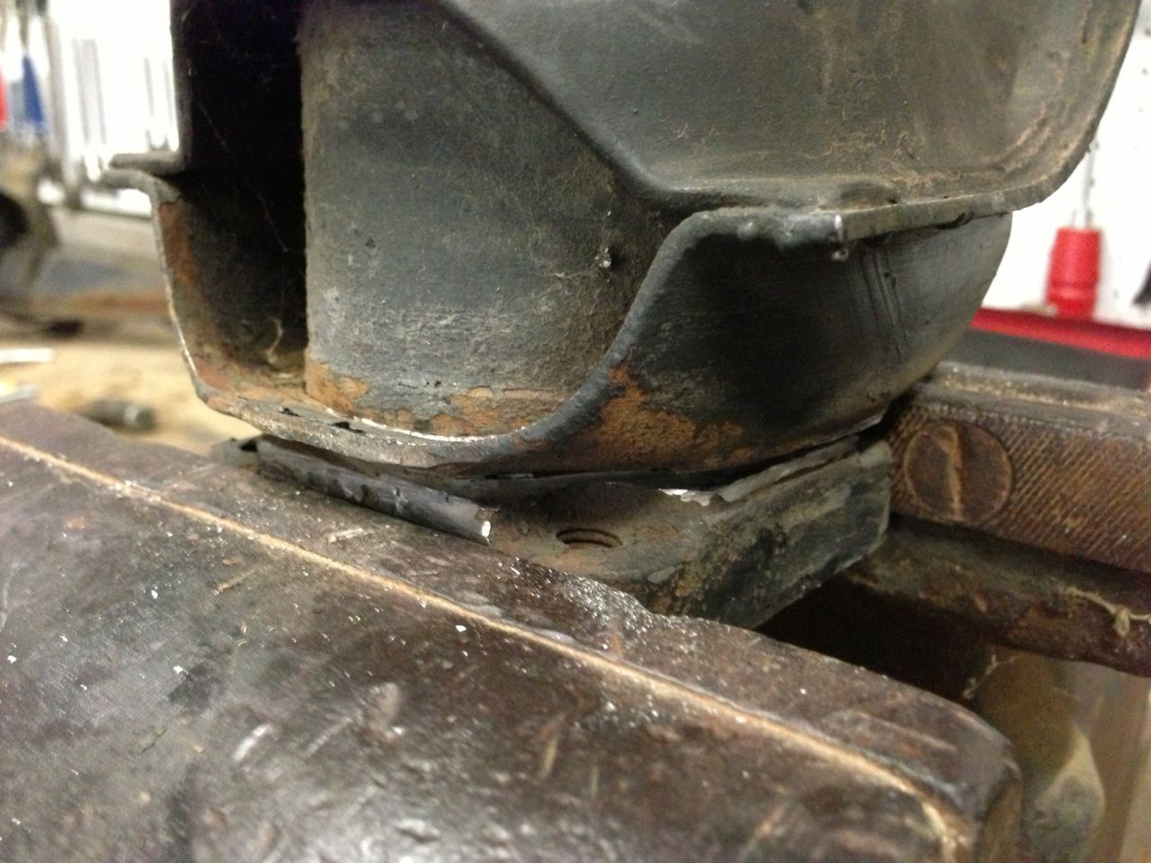 Need to carefully cut out the centre and then turn it down in the lathe to reduce the shoulder. This will allow it to sit further in on the IRS arm.