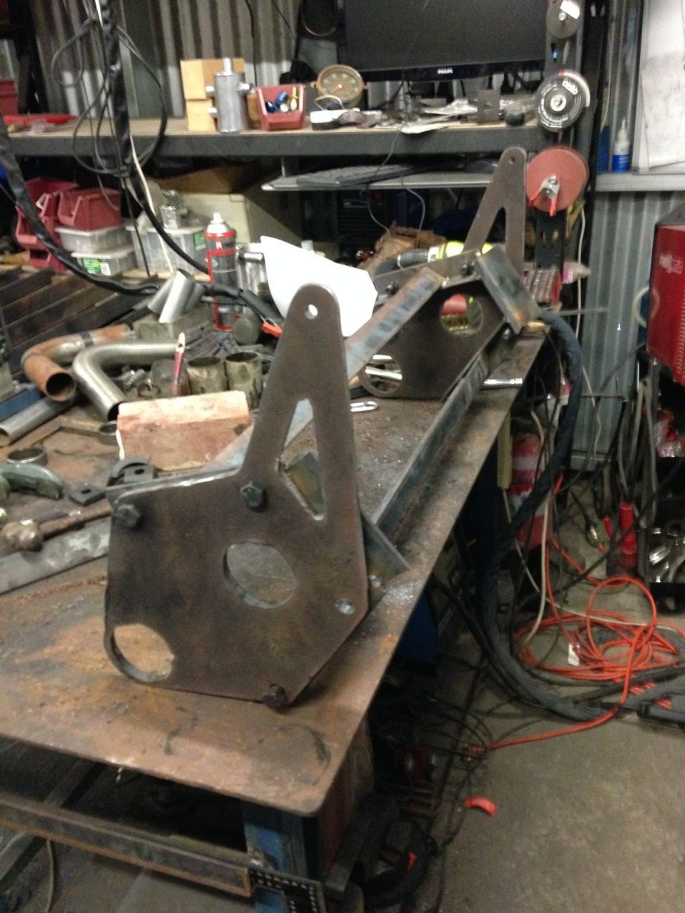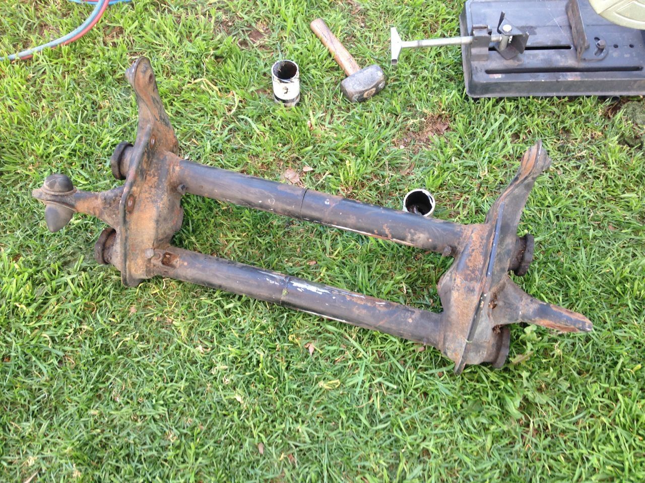 Next, mark out the holes for the adjusters and weld them on. (mark the position of the original holes on the beam before you cut the center out to make this step easier)
