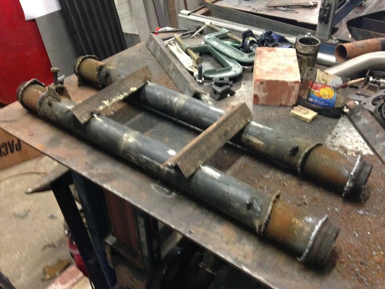 brace the tubes and cut the end plates off