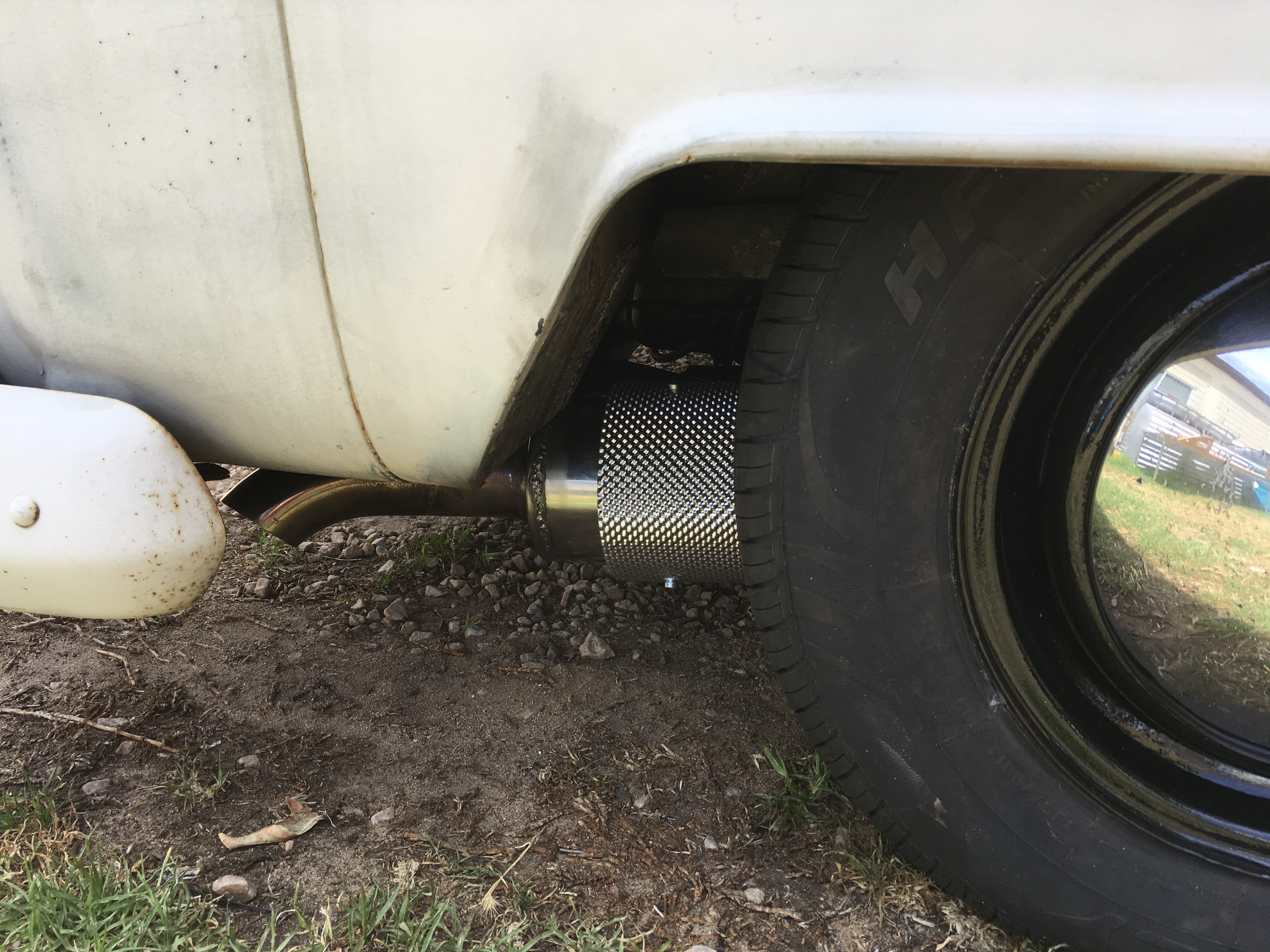 I made up a heat shield as the sidewinder style exhaust was too close to the tyre, which resulted in a cooked tyre.