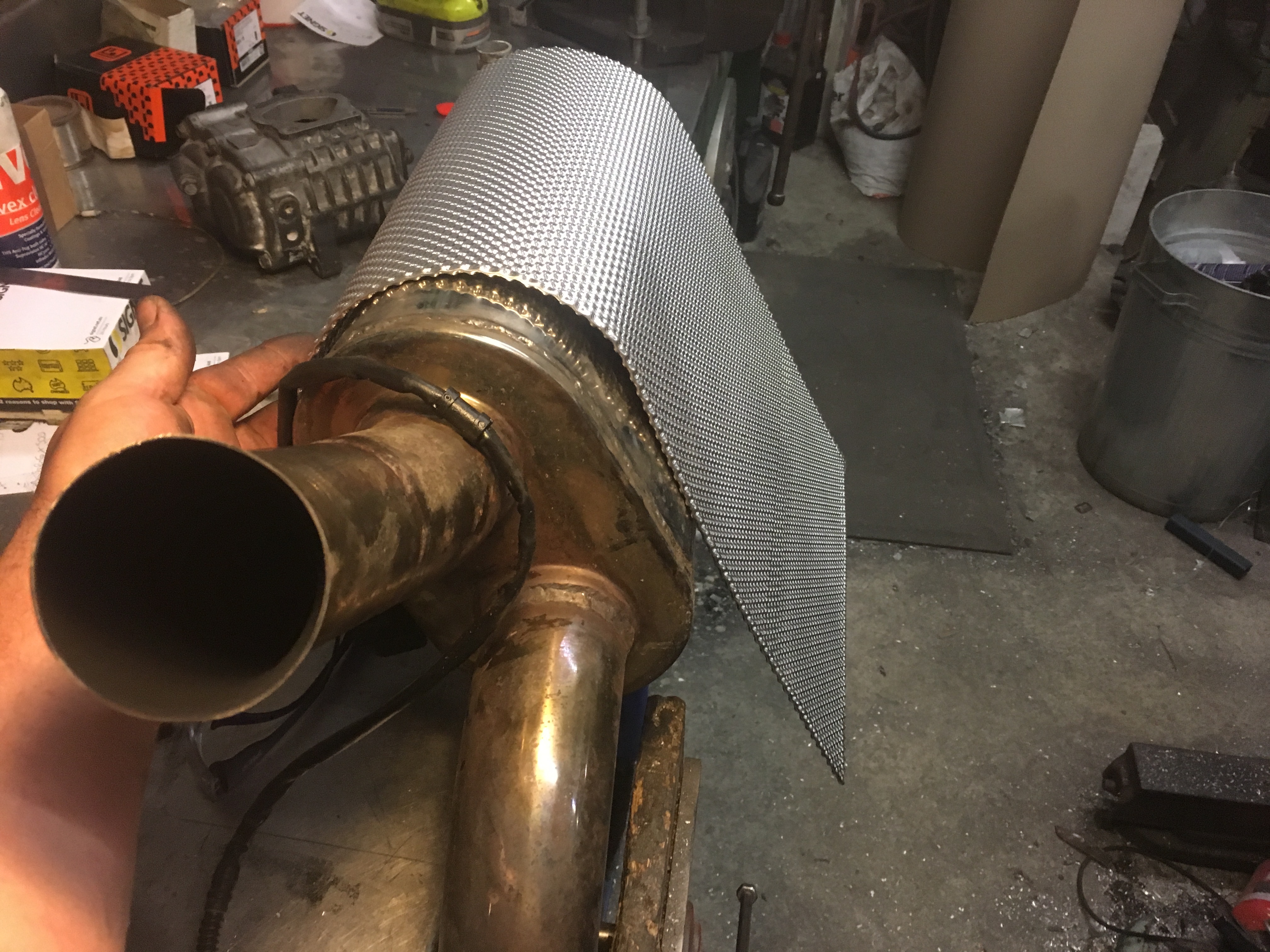 I bought the heat shield form ebay and fixed it to the silencer using nut-serts and some spacers to create an air gap in between the silencer and heat shield.